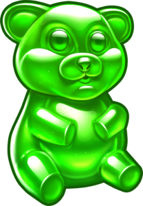 Símbolos de maior valor (estrela verde, jujuba roxa, coração laranja e bola rosa):