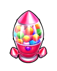 Rodadas grátis: Ativadas por 3 ou mais símbolos Scatter (dispenser de doces em formato de foguete), oferecendo de 10 a 30 rodadas grátis dependendo do número de Scatters.